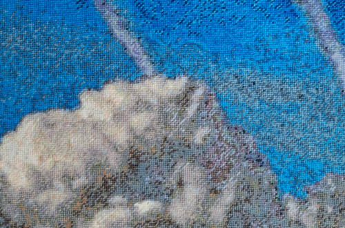 Deux pièces issues d’une captation sur une télévision ayant des problèmes de réception. Pouvoir par le temps long de la borderie figer des images qui n’auraient pas dû être regardées. Dans ce travail 2 archers lors d’une compétition de tir à l’arc lors de Paris 2024, deviennent une apothéose colorée aux limites de l’abstraction. tapisseries point/point 84cm/46cm Glitch 1 -JOseptembre 24>janvier 25 Clitch 2 – JOjanvier 25>avril 25
